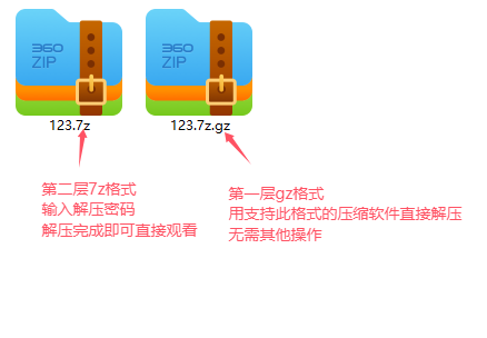 解压教程 本站目前有两种压缩方式,统一解压密码为:weituba.com 第一种: 常规双层压缩,首次上传均采用此种方式,分为gz和7z两种格式,请一定确保自己设备的压缩软件支持这两种格式再解压,这里推荐使用360压缩或者7zFM。 教程图解: 第二种: 分卷压缩,只有在资源失效二次上传或特殊资源会采用此种压缩方式。 教程图解: 请注意:本站目前均采用百度网盘进行存储,不支持在线解压,有任何问题,均可在个人中心提交工单,客服会定时处理。